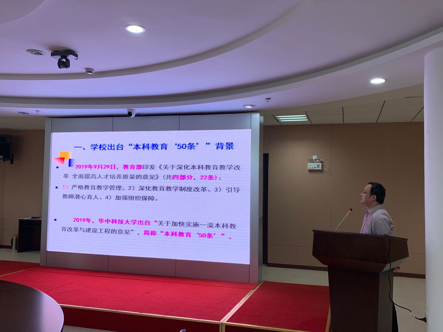 纪委书记、副院长樊自田做了关于“本科教育50条”的报告。他为大家解读了mg冰球突破试玩“关于加快实施一流本科教育改革与建设工程的意见”,他强调教学成果与科研成果一样,需要大量时间投入,“成果”是做出来的,不是写出来的。