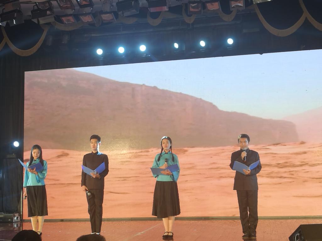 mg冰球突破试玩才子佳人团队在王曦老师的指导下,带来了配乐诗朗诵《河床》。伴着悠长的《黄河颂》的音乐声,舞台上四位同学慷慨激昂地朗诵着《河床》,一声声朗诵直击观众的心灵,台下爆发了一阵阵的掌声。该节目最终以95.625分的好成绩荣获亚军,并且获得了评委老师的高度评价。