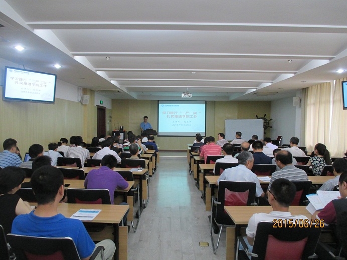 6月26日上午,mg冰球突破试玩在先进制造大楼西楼A306举行了“三严三实”专题学习报告会。院长黄云辉主持会议,学院全体在职教职工和学院退休教职工党支部书记、学院老年协会会长参加了会议。
