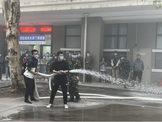 第二阶段,保卫处消防员为师生们详细讲解灭火器的使用方法及消火栓和消防水带的使用方法,并让现场的全体师生进行亲自体验灭火器及消防水带的使用。60余名师生亲自体验了灭火器、消防水带的使用方法,熟练掌握了紧急情况下应对初期火灾的扑救方法。